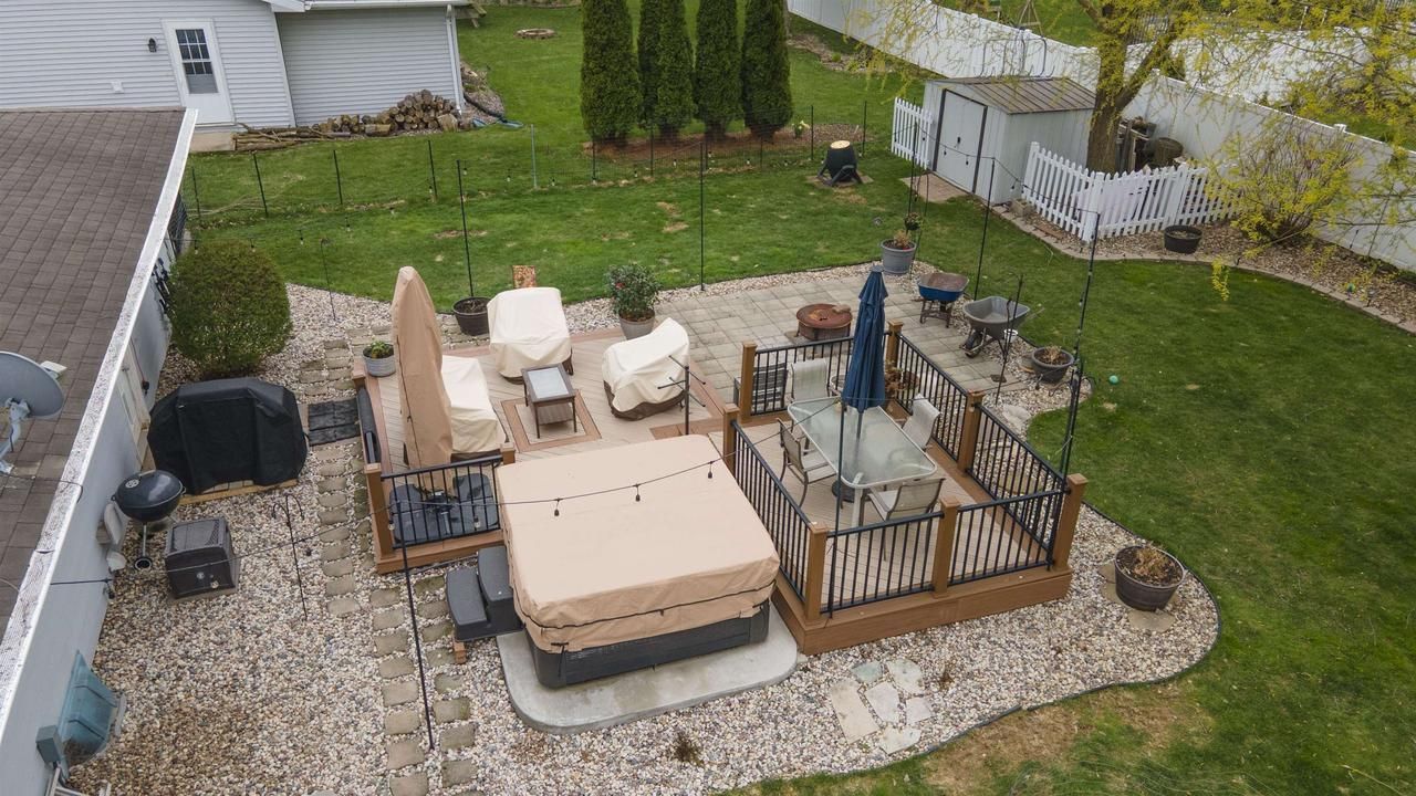 Meticulously maintained and thoughtfully updated. Welcome Home. This property features 1766 sq ft of comfortable living space inside including 3 bedrooms, 2 full baths, new flooring, toilets, lighting fixtures, electrical, closet organizer and so much more. Enjoy in floor heat in lower-level bath, LL surround sound ready for hook up & cozy office area. The garage is currently used as a workout space & additional parking in the driveway maximizes the space. Stone landscaping & some new windows added around the home for extra curb appeal but just wait, the back yard living space complete with Trex Deck, fire pit, hot tub slab (hot tub negotiable), storage shed & still room to roam. Water softener is owned, battery back up on sump pump stays & reverse osmosis system installed.