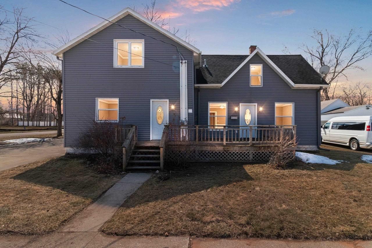 Welcome to this beautiful 5-bedroom, 2 full bath home just in the City Limits of Peshtigo, offering the perfect blend of convenience and a peaceful setting. This charming home features tall ceilings, hardwood floors, and a spacious, inviting layout. The functional kitchen includes newer appliances Upstairs offers additional living space complete with a built-in wet bar perfect for entertaining or creating a separate living area. Situated on a .43-acre lot, the property boasts a large backyard and two detached garages for ample storage and workspace. With two furnaces, two AC units, a second electrical meter, & an upstairs laundry hookup, this home offers excellent potential for multi-family conversion or investment. A rare find with space, character, and versatility!