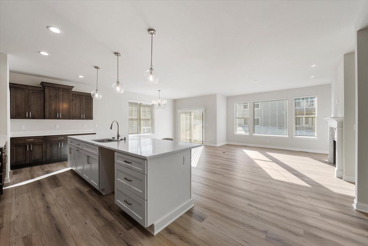 NEW HOME AVAILABLE NOW - Split ranch with 3 bedrooms & open floor plan. Spacious KIT boasts beautifully crafted cabinets, convenient walk-in pantry, quartz countertops & flush center island. Window blinds included throughout. DR, Great Rm w/ 9' ceiling, direct vent GFP, mantel & stacked stone face. Lg owner's suite features airy windows, lg WIC, double vanity & full width mirror, Ceramic tiled shower & flooring. Egress window and plumbing stubbed in 8' LL ready for your future finish! Clubhouse w/fitness, pickle and bocce courts, lawn/snow services included. You deserve this lifestyle! Images actual, some with virtual staging. Concrete and landscaping to be completed in season.