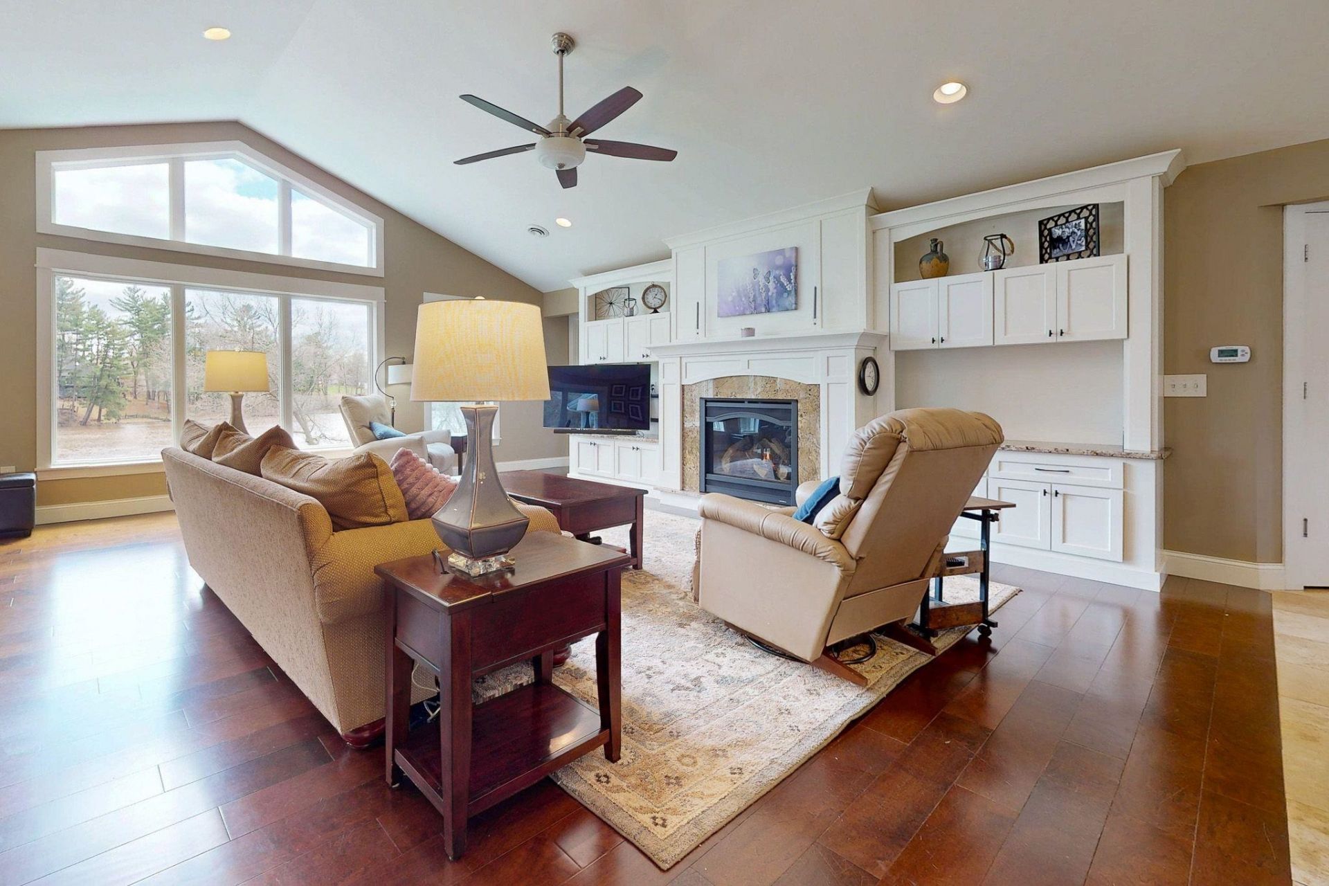This beautiful ranch on a quiet street, on a cul-de-sac, in a country setting. The main level has hardwood and tile floors, vaulted ceiling, an office/study, formal dining room, and features a fireplace. Also on the main level are 3 bedrooms, 2 full baths and laundry. The kitchen features tile floors, quartz counters, tiled backsplash, stainless steel appliances, pantry, breakfast nook and breakfast bar. Appliances stay with the home. The primary bedroom is located on the main level and features hardwood floors and walk-in closet. The primary bedroom's attached bath includes tile floors, quartz counters and tiled shower. The finished lower level features a wet bar, bedroom, full bath, workout area and laundry room. Outside you'll find a treated wood deck and porch overlooking the yard with mature trees. Exterior features include waterfront access and detached building.