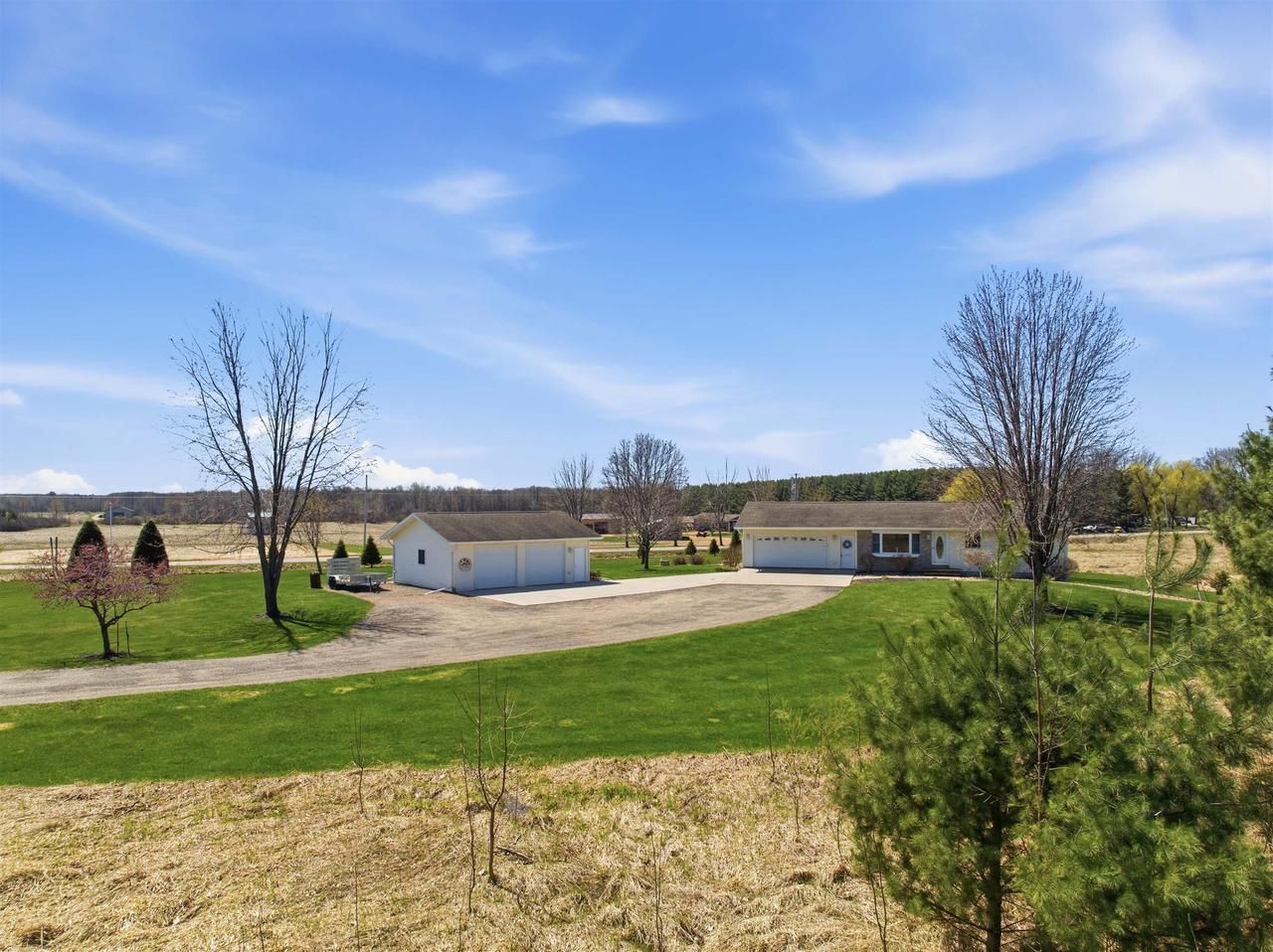 Welcome to 8917 S. Washington Ave. in Marshfield - where space, comfort, and country charm come together on 4.21 beautiful acres just minutes from town. This well-maintained ranch-style home offers 4 bedrooms, 2 full baths, a 2-car attached garage, plus an additional 26x26 detached garage - perfect for extra storage, hobbies, or toys. Step inside to a spacious living room filled with natural light from a stunning bay window, creating a warm and inviting atmosphere. The heart of the home is the recently updated kitchen, featuring custom cabinetry by BTR all appliances included, and an impressive 11-foot island with sink - ideal for cooking, gathering, and entertaining. Large windows provide picturesque views of the backyard. Down the hall, you'll find three comfortable bedrooms and a beautifully updated full bath with quartz countertops. The lower level expands your living space with a generous family room complete with a wet bar, pellet stove, egress windows for abundant daylight, a second full bath, and a fourth bedroom - perfect for guests or extended living. Outside, you'll appr